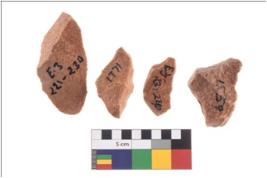 | Description / विवरण | Specimen of flake tools with prominent flaking marks. They are made up of a short flakes with sides trimmed. |