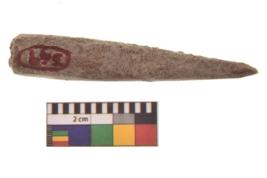 | Description / विवरण | Specimen of a bone point made on long bone, it is rectangular cross section in shape with flat and thick body. |