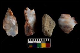 | Description / विवरण | There are n 04 objects; among them three have chalcedony, and one is chert, and three have sharp and retouches edges, and one has blunt edge. |