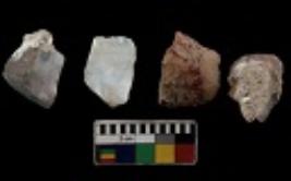 | Description / विवरण | There are n 4 utilized flake cores. There are multi directional irregular scar pattern on them. One is tapering at one end and three have blunted edges. |