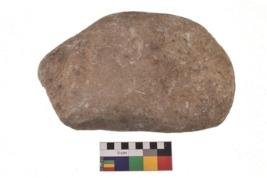 | Description / विवरण | Specimen of a roughly oval shaped smasher with smooth surface. It is creamish in colour and has flat base. |