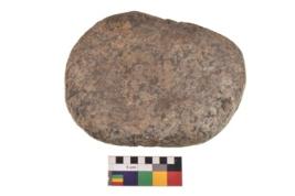 | Description / विवरण | Specimen of an oval shaped smasher with smooth surface. It is brownish in colour and has flat base. |
