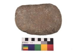| Description / विवरण | Specimen of an oval shaped smasher with smooth surface. It is brownish in colour and has flat base. |