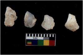 | Description / विवरण | There are n 4 flakes tool; there are flakes tool with prominent flaking marks. It made up of a large flakes with sides trimmed. |