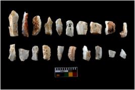 | Description / विवरण | There are n 20 flakes; most of them are with marginal retouch . They have a flat dorsal surface and double rigdes going parallel to its length. |