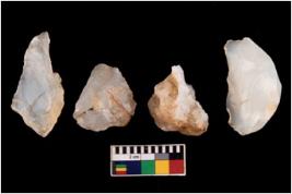 | Description / विवरण | Four utilised worked cores with sharp edges. Flakes have been removed from few sides. |