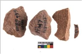 | Description / विवरण | Specimen of flake tools with prominent flaking marks. They are made up of a short flakes with sides trimmed. |