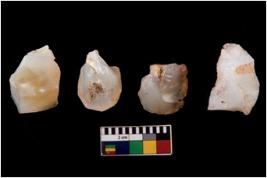 | Description / विवरण | Four utilised worked cores with sharp edges. Flakes have been removed from few sides. |