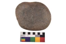 | Description / विवरण | Specimen of a round shaped hammerstone with smooth surface. It is blackish in colour and round in cross section. |