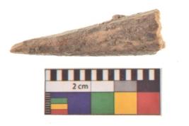 | Description / विवरण | Specimen of a bone point made on long bone, it is rectangular cross section in shape with flat and thick body.It is having sharpe pointed edge |