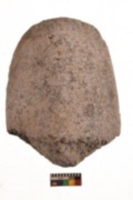 | Description / विवरण | Specimen of a roughly oval shaped saddle quern. It is light brown in colour and partially smooth in texture. It has flat base. |