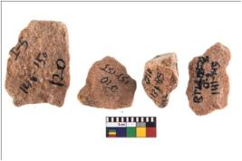 | Description / विवरण | Specimen of flake tools with prominent flaking marks. They are made up of a short flakes with sides trimmed. |