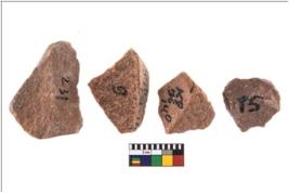 | Description / विवरण | Specimen of flake tools with prominent flaking marks. They are made up of a short flakes with sides trimmed. |