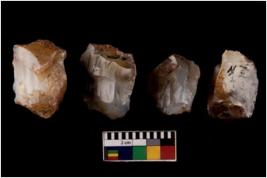 | Description / विवरण | Four utilised worked cores with sharp edges. Flakes have been removed from few sides. |