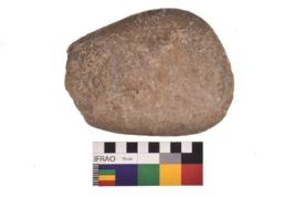 | Description / विवरण | Specimen of a roughly oval shaped grinding stone with smooth surface. It is brownish in colour and has flat base. |