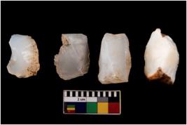 | Description / विवरण | Four utilised worked cores with sharp edges. Flakes have been removed from few sides. |
