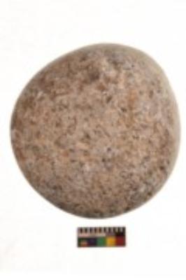 | Description / विवरण | Specimen of a roughly round shaped hammerstone. It is creamish in colour and partially smooth in texture. |