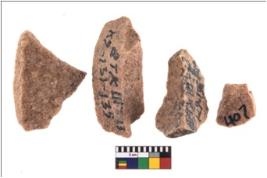 | Description / विवरण | Specimen of flake tools with prominent flaking marks. They are made up of a short flakes with sides trimmed. |