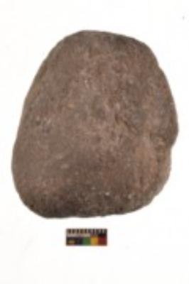 | Description / विवरण | Specimen of a roughly oval shaped hammerstone. It is brownish in colour and rough in texture. It has flat base. |