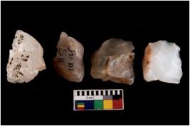 | Description / विवरण | Four utilised worked cores with sharp edges. Flakes have been removed from few sides. |