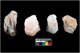 | Description / विवरण | Four utilised worked cores with sharp edges. Flakes have been removed from few sides. |