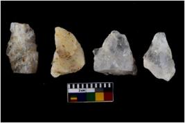 | Description / विवरण | There are n 4 utilized flake cores. Three are tapering at one end and one has blunted edges. |