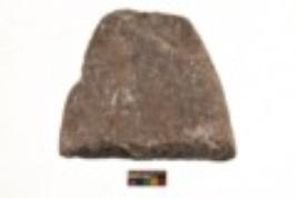| Description / विवरण | Specimen of a roughly rectangular shaped grinding stone. It is dark brown in colour and coarse in texture. It has flat base. |