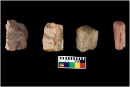 | Description / विवरण | Four utilised worked cores with sharp edges. Flakes have been removed from few sides. |