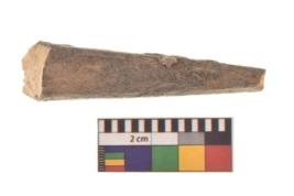 | Description / विवरण | Specimen of a bone point made on long bone, it is rectangular cross section in shape with flat and thick body. |