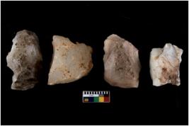 | Description / विवरण | There are n 4 utilized flake cores. There are multi directional irregular scar pattern on them. One has sharp edge and three have blunted edges. |