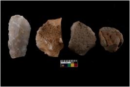 | Description / विवरण | There are n 4 utilized flake cores. Out of them two are made up of Chert and two are made up of Chalcedony. There are multi directional irregular scar pattern on them. One has sharp edge and three have blunted edges. |