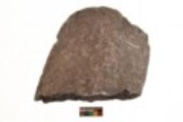 | Description / विवरण | Specimen of a roughly oval shaped saddle quern. It is dark brown in colour and rough in texture. It has flat base. |