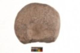 | Description / विवरण | Specimen of a roughly round shaped hammerstone with one groove. It is light brown in colour and smooth in texture. It is round in cross section. |