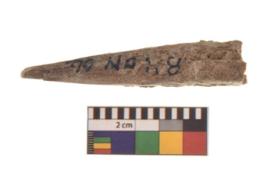 | Description / विवरण | Specimen of a bone point made on long bone, it is rectangular cross section in shape with flat and thick body. |