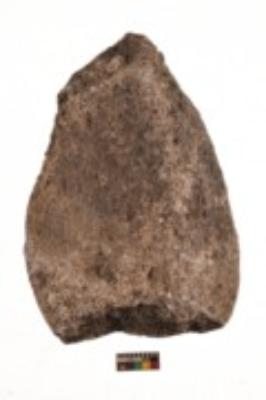 | Description / विवरण | Specimen of a roughly oval shaped saddle quern. It is brownish in colour and rough in texture. It has flat base. |