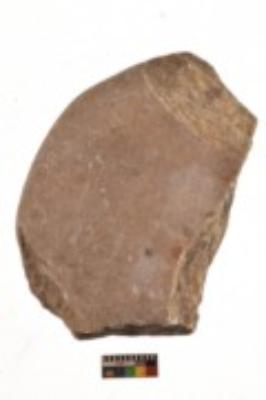 | Description / विवरण | Specimen of an uneven shaped broken smasher with smooth surface. It is brownish in colour and has flat base. |