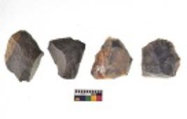 | Description / विवरण | There are n 4 utilized flake cores. There are multi directional irregular scar pattern on both dorsal and ventral face of the flake cores. One has blunted edge and three have round edges. |
