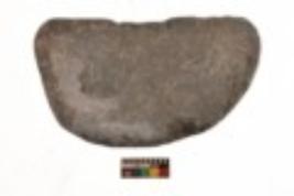 | Description / विवरण | Specimen of a roughly oval shaped smasher with coarse surface. It is dark brown in colour and has flat base. |