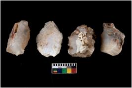 | Description / विवरण | There are n 4 utilized flake cores. Out of them two are made up of Chert and two are made up of Chalcedony. There are multi directional irregular scar pattern on them. One has blunted edge and three have round edges. |