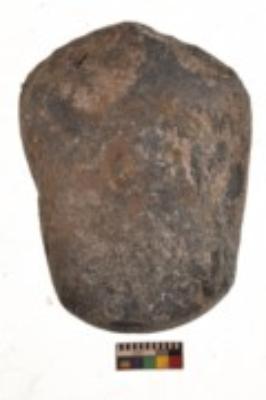 | Description / विवरण | Specimen of a roughly rectangular shaped smasher with rough surface. It is dark brown in colour and has flat base. |