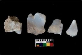 | Description / विवरण | There are n 4 cores; There are multidirectional irregular scar pattern on them. Some of them are tapering at one end. One of them flat thick bottom and pointed functional top. |