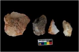 | Description / विवरण | Four utilised worked cores with sharp edges. Flakes have been removed from few sides. |