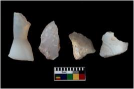 | Description / विवरण | There are n 4 cores; there are multidirectional irregular scar pattern on them. Some of them are tapering at one end with sharpe edges. |