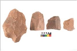 | Description / विवरण | There are n 4 utilized flake cores. There are multidirectional irregular scar pattern on both dorsal and ventral face of the flake cores. |