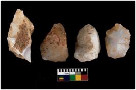 | Description / विवरण | There are n 4 utilized flake cores. Out of them two are made up of Chert and two are made up of Chalcedony. There are multi directional irregular scar pattern on them. One has sharp edge and three have blunted edges. |