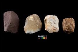 | Description / विवरण | Four utilised worked cores with sharp edges. Flakes have been removed from few sides. |