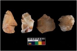 | Description / विवरण | There are n 4 utilized flake cores. Out of them one is made up of Chert and three are made up of Chalcedony. There are multi directional irregular scar pattern on them. Two are tapering at one end and two have blunted edges. |