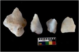 | Description / विवरण | There are n 4 cores; There are multidirectional irregular scar pattern on them. Some of them are tapering at one end. One of them flat thick bottom and pointed functional top. |
