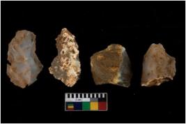 | Description / विवरण | There are n 4 utilized flake cores. Out of them one is made up of Chert and three are made up of Chalcedony. There are multi directional irregular scar pattern on them. One has sharp edge and three have blunted edges. |