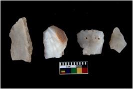 | Description / विवरण | There are n 4 cores; There are multidirectional irregular scar pattern on them. Some of them are tapering at one end. One of them flat thick bottom and pointed functional top. |